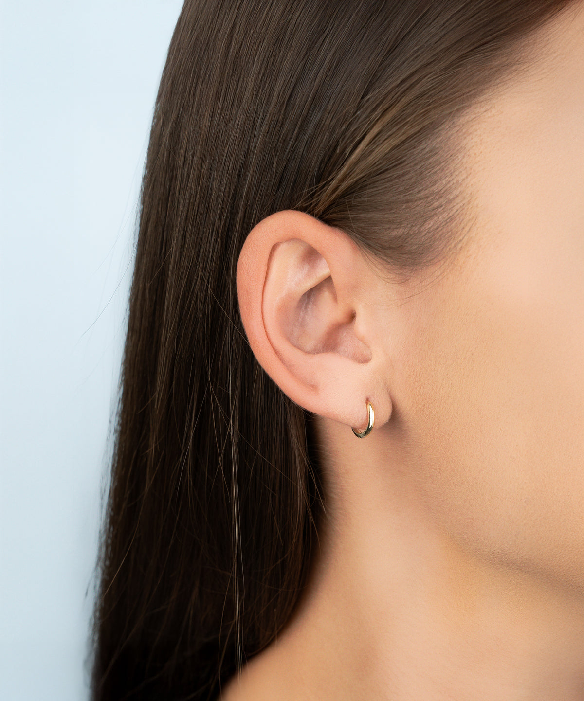 Made to wear daily, they sit close to the lobe with a smooth, comfortable fit. Layer with dainty studs or let their quiet shine stand alone.