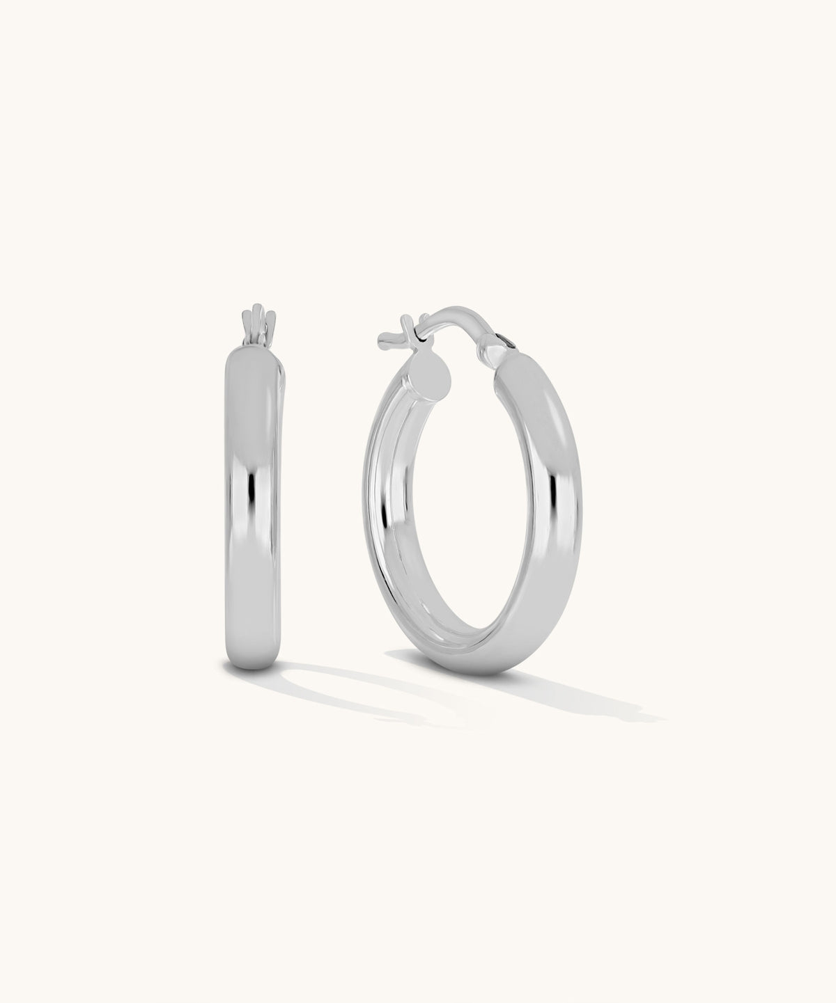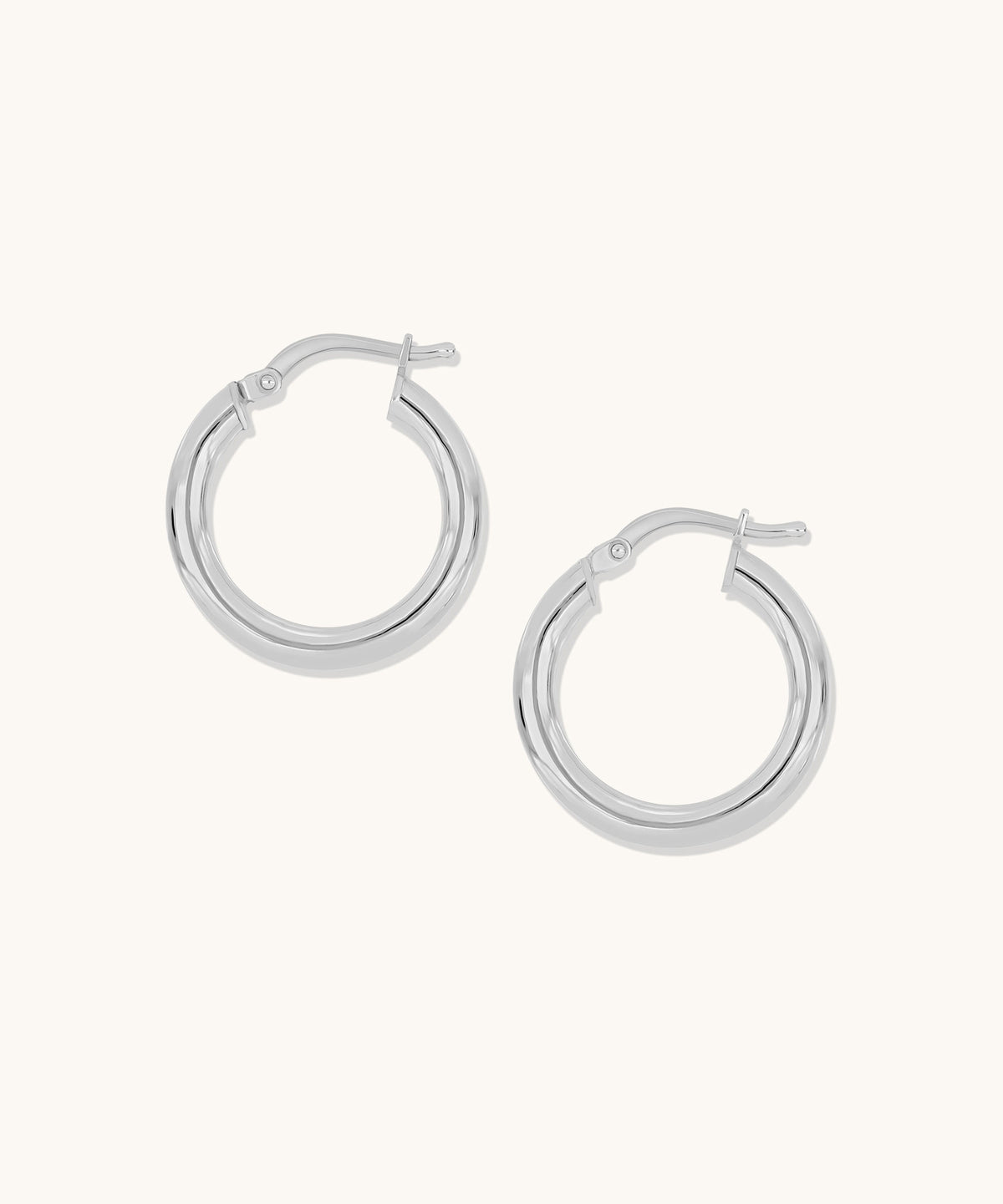 Elevate your essentials with these 20mm tube hoops. Measuring 3mm wide with a 20mm outer diameter, they highlight polished geometry. Lightweight and comfortable, they bring stacking ease and are finished with a latch back closure and hypoallergenic design.